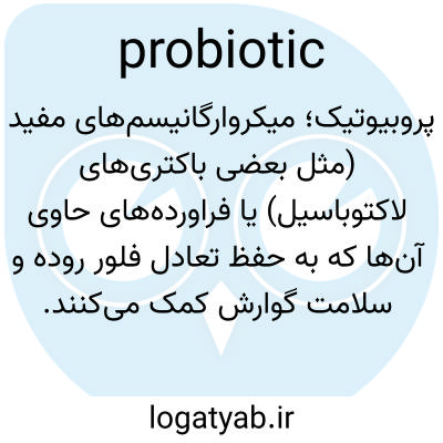 📌 مربوط به غذا یا مکمل غذایی حاوی باکتری‌های زنده که جایگزین باکتری‌های مفیدی می‌شوند که معمولاً در دستگاه گوارش وجود دارند یا به آنها اضافه می‌شوند.