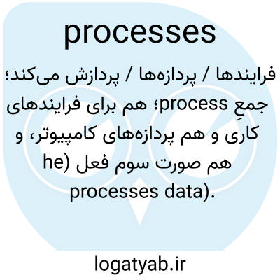 فرایندها / پردازه‌ها / پردازش می‌کند؛ جمعِ process؛ هم برای فرایندهای کاری و هم پردازه‌های کامپیوتر، و هم صورت سوم فعل (he processes data).