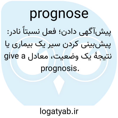 پیش‌آگهی دادن؛ فعل نسبتاً نادر: پیش‌بینی کردن سیر یک بیماری یا نتیجهٔ یک وضعیت، معادل give a prognosis.