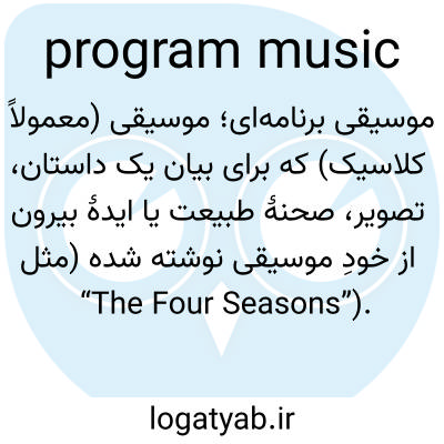 موسیقی برنامه‌ای؛ موسیقی (معمولاً کلاسیک) که برای بیان یک داستان، تصویر، صحنهٔ طبیعت یا ایدهٔ بیرون از خودِ موسیقی نوشته شده (مثل “The Four Seasons”).