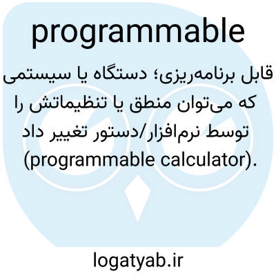 قابل برنامه‌ریزی؛ دستگاه یا سیستمی که می‌توان منطق یا تنظیماتش را توسط نرم‌افزار/دستور تغییر داد (programmable calculator).
