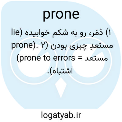 ۱) دَمَر، رو به شکم خوابیده (lie prone). ۲) مستعدِ چیزی بودن (prone to errors = مستعد اشتباه).