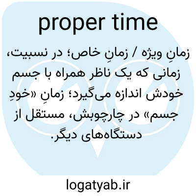 📌 زمانی که توسط ساعتی که حرکت یکسانی با ناظر دارد اندازهگیری میشود. طبق نظریه نسبیت، هر ساعتی که نسبت به ناظر در حرکت باشد یا در میدان گرانشی متفاوتی قرار داشته باشد، زمان مناسب را اندازهگیری نخواهد کرد.