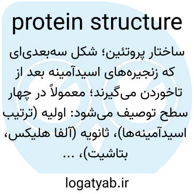 📌 ساختار سهبعدی یک پروتئین که اغلب کلید عملکرد آنزیمی آن است. ساختار یک پروتئین به چهار روش مشخص میشود: ساختار اولیه، ترتیب قرارگیری اسیدهای آمینه مختلف در یک زنجیره پروتئینی است، در حالی که ساختار ثانویه شامل هندسه بخشهای زنجیرهای به شکلهایی مانند مارپیچ یا صفحه است. ساختار سوم نحوه تا خوردن یک پروتئین روی خود را توصیف میکند؛ ساختار چهارم یک پروتئین نحوه اتصال زنجیرههای مختلف پروتئین به یکدیگر را شرح میدهد.