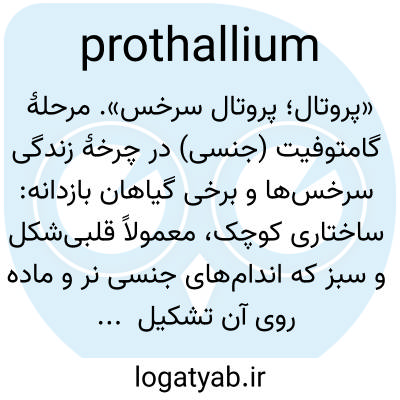 «پروتال؛ پروتال سرخس». مرحلهٔ گامتوفیت (جنسی) در چرخهٔ زندگی سرخس‌ها و برخی گیاهان بازدانه: ساختاری کوچک، معمولاً قلبی‌شکل و سبز که اندام‌های جنسی نر و ماده روی آن تشکیل می‌شود.