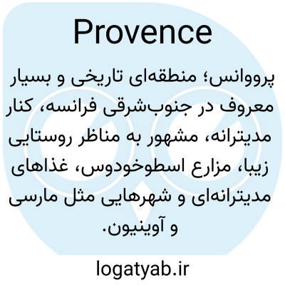 پرووانس؛ منطقه‌ای تاریخی و بسیار معروف در جنوب‌شرقی فرانسه، کنار مدیترانه، مشهور به مناظر روستایی زیبا، مزارع اسطوخودوس، غذاهای مدیترانه‌ای و شهرهایی مثل مارسی و آوینیون.