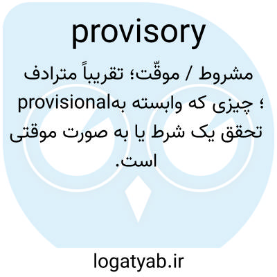 مشروط / موقّت؛ تقریباً مترادف provisional؛ چیزی که وابسته به تحقق یک شرط یا به صورت موقتی است.