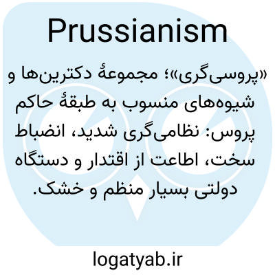 📌 روحیه، سیستم، سیاست یا روش‌های نظامی‌گری که از نظر تاریخی با پروس‌ها مرتبط است.