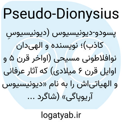 پسودو-دیونیسیوس (دیونیسیوسِ کاذب)؛ نویسنده و الهی‌دان نوافلاطونی مسیحی (اواخر قرن ۵ و اوایل قرن ۶ میلادی) که آثار عرفانی و الهیاتی‌اش را به نام «دیونیسیوس آریوپاگی» (شاگرد پولُس) نوشت؛ امروزه او را «دیونیسیوسِ جعلی» می‌نامند.