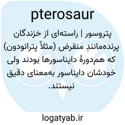 📌 هر خزنده پرندهای از راسته منقرضشده پتروسوریا، از دورههای ژوراسیک و کرتاسه، که انگشت بیرونی اندام جلویی بسیار کشیده و دارای غشایی برای بال است.