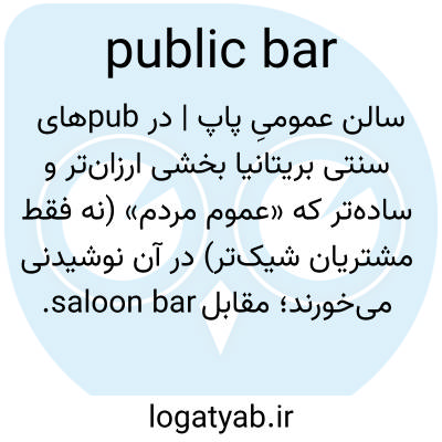 📌 (در میخانه یا میخانه) بخش عمومی یک بار یا بارخانه، که به اندازه بخش میخانه اختصاصی، آرام یا مبله نیست.