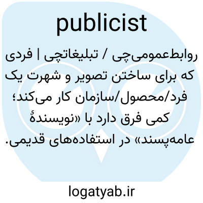 📌 شخصی که تبلیغ می‌کند، به خصوص یک نماینده مطبوعاتی یا مشاور روابط عمومی.