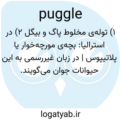 ۱) توله‌ی مخلوط پاگ و بیگل ۲) در استرالیا: بچه‌ی مورچه‌خوار یا پلاتیپوس | در زبان غیررسمی به این حیوانات جوان می‌گویند.