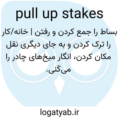 📌 نقل مکان کردن، ترک خانه، شغل یا کشور. برای مثال، ما سالهاست که اینجا زندگی میکنیم، اما حالا وقتش رسیده که چوبهای مهار را بالا بکشیم. این اصطلاح به چوبهایی اشاره دارد که مرزهای ملک را مشخص میکنند. [اوایل دهه ۱۸۰۰]
