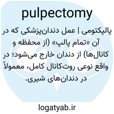 پالپکتومی | عمل دندان‌پزشکی که در آن «تمام پالپ» (از محفظه و کانال‌ها) از دندان خارج می‌شود؛ در واقع نوعی روت‌کانال کامل، معمولاً در دندان‌های شیری.