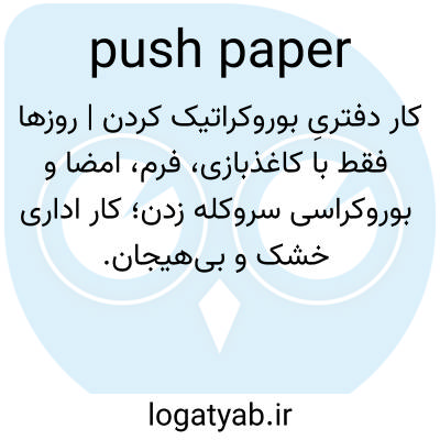 📌 انجام کارهای اداری، اغلب کارهای جزئی و کوچک اداری. برای مثال، او تمام روز را صرف جابجایی کاغذ برای رئیسش کرد. [عامیانه؛ نیمه دوم دهه 1900]