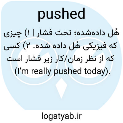 هُل داده‌شده؛ تحت فشار | ۱) چیزی که فیزیکی هُل داده شده. ۲) کسی که از نظر زمان/کار زیر فشار است (I’m really pushed today).