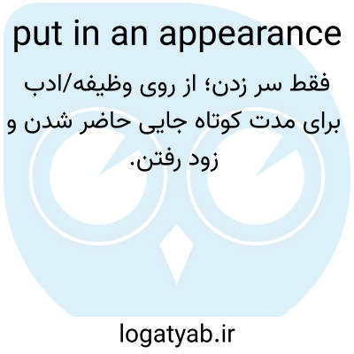 📌 همچنین، حضور داشته باشید. حضور داشته باشید، به خصوص برای مدت کوتاهی، مانند «ما امیدوار بودیم که ستاره راک در مهمانی حاضر شود، اما او نیامد»، یا «او خسته بود و نمیخواست به مهمانی برود، اما تصمیم گرفت که باید حضور داشته باشد». [نیمه دوم دهه 1600]