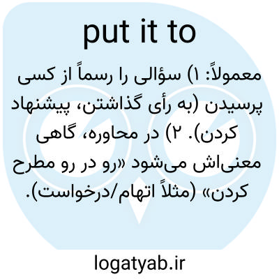 📌 برای بررسی ارائه شده است، مانند «بیایید آن را به رأی بگذاریم» یا «من آن را برای شما مطرح میکنم، من بهترین کاری را که میتوانستم در آن شرایط انجام دادم.» [اواسط دهه ۱۷۰۰]