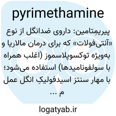 📌 مادهای قوی، C12H13ClN4، که علیه پلاسمودیومهای حساس در درمان پیشگیرانه مالاریا و علیه توکسوپلاسما گوندی در درمان توکسوپلاسموز استفاده میشود.