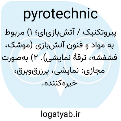 پیروتکنیک / آتش‌بازی‌ای؛ ۱) مربوط به مواد و فنون آتش‌بازی (موشک، فشفشه، ترقهٔ نمایشی). ۲) به‌صورت مجازی: نمایشی، پرزرق‌وبرق، خیره‌کننده.