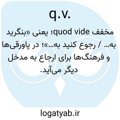 کوارت، ربع، ربع، qv، quod vide= کدام را ببینید؛ quantum vis= هرچقدر که بخواهید.