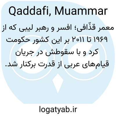 📌 قذافی، یک افسر نظامی و رهبر سیاسی لیبیایی در قرن بیستم. قذافی، حاکم لیبی و یک عرب مبارز (به مناقشه اعراب و اسرائیل مراجعه کنید)، به شدت با نفوذ ایالات متحده در منطقه دریای مدیترانه، به ویژه نفوذ آن به نمایندگی از اسرائیل، مخالف است. ایالات متحده، قذافی را به برنامهریزی تروریسم متهم کرده است، چیزی که او اکنون ادعا میکند آن را رد میکند.