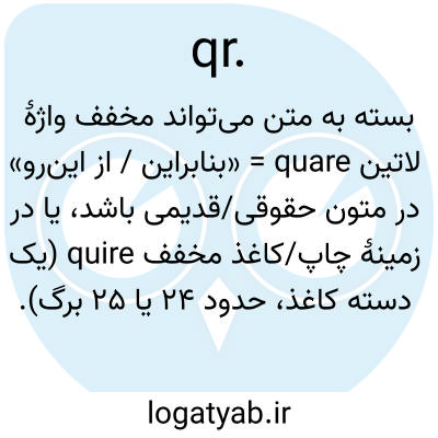 بسته به متن می‌تواند مخفف واژهٔ لاتین quare = «بنابراین / از این‌رو» در متون حقوقی/قدیمی باشد، یا در زمینهٔ چاپ/کاغذ مخفف quire (یک دسته کاغذ، حدود ۲۴ یا ۲۵ برگ).