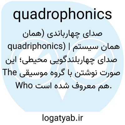 صدای چهارباندی (همان quadriphonics) | همان سیستم صدای چهاربلندگویی محیطی؛ این صورت نوشتن با گروه موسیقی The Who هم معروف شده است.