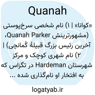 «کوانا» | ۱) نام شخصی سرخ‌پوستی (مشهورترینش Quanah Parker، آخرین رئیس بزرگ قبیلهٔ کُمانچی) | ۲) نام شهری کوچک و مرکز شهرستان Hardeman در تگزاس که به افتخار او نام‌گذاری شده است.