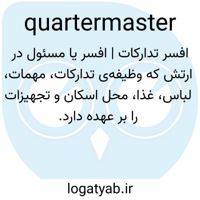 📌 نظامی، افسری که مسئول تأمین محل اقامت، لباس، سوخت، حمل و نقل و غیره برای یک گروه از سربازان است.