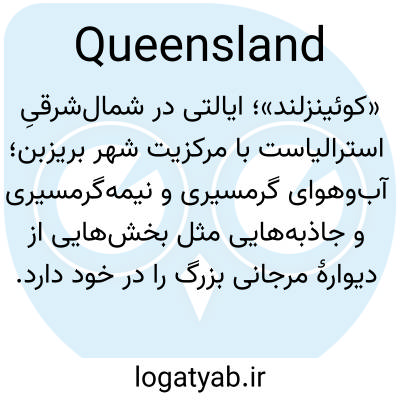 📌 ایالتی در شمال شرقی استرالیا. ۱,۷۳۶,۵۹۵ کیلومتر مربع (۶۷۰,۵۰۰ مایل مربع). بریزبن.