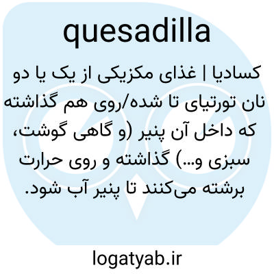 📌 تورتیلا که روی موادی از پنیر رنده شده و گاهی سبزیجات یا گوشت تا میشود و روی تابه یا مانند آن پخته میشود.