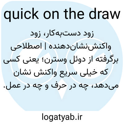 📌 همچنین، سریع عمل کردن. سریع در عمل یا واکنش نشان دادن، مانند «اگر میخواهی اینجا مسکن با اجاره پایین پیدا کنی، باید سریع عمل کنی»، یا بروس وقتی صحبت از پاسخ دادن به سوالات میشد، سریع عمل میکرد. اولین اصطلاح از تفنگداران غرب آمریکا گرفته شد و در نیمه اول دهه 1900 به معنای «یک واکنش سریع» گسترش یافت. این نوع اصطلاح حدود سال 1800 میلادی به وجود آمد.