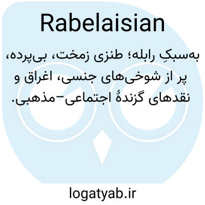 📌 مربوط به، یا اشاره به، یا اشاره به فرانسوا رابله، که آثارش با طنز گسترده و بیادبانه و هجویه تند مشخص میشود.