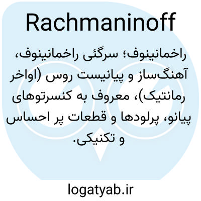راخمانینوف؛ سرگئی راخمانینوف، آهنگ‌ساز و پیانیست روس (اواخر رمانتیک)، معروف به کنسرتوهای پیانو، پرلودها و قطعات پر احساس و تکنیکی.