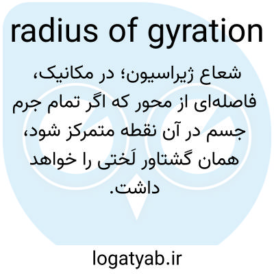 📌 فاصلهای از محوری که میتوان فرض کرد جرم یک جسم در آن متمرکز است و در آن، گشتاور اینرسی برابر با گشتاور اینرسی جرم واقعی حول محور خواهد بود، که برابر با جذر خارج قسمت گشتاور اینرسی و جرم است.