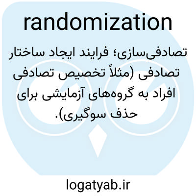 📌 عمل یا فرآیند مرتب‌سازی یا انتخاب افراد، اشیا یا مکان‌ها به صورت تصادفی، مانند یک نمونه یا آزمایش، به ویژه به منظور کاهش سوگیری و دخالت متغیرهای نامربوط.