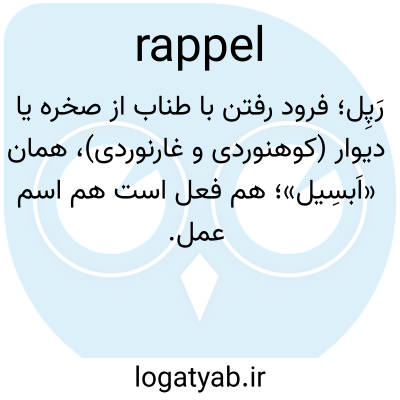 📌 (در کوهنوردی) عمل یا روش پایین آمدن از یک سربالایی تند یا عبور از یک برآمدگی به وسیلهی یک طناب دوتایی که در بالا بسته شده و دور بدن، معمولاً زیر ران چپ و بالای شانهی راست، قرار گرفته و به تدریج در هنگام پایین آمدن کشیده میشود.
