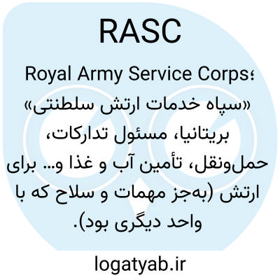 Royal Army Service Corps؛ «سپاه خدمات ارتش سلطنتی» بریتانیا، مسئول تدارکات، حمل‌ونقل، تأمین آب و غذا و… برای ارتش (به‌جز مهمات و سلاح که با واحد دیگری بود).