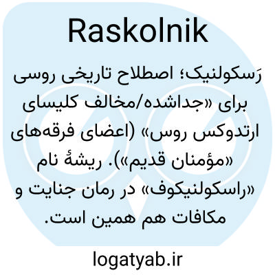 رَسکولنیک؛ اصطلاح تاریخی روسی برای «جداشده/مخالف کلیسای ارتدوکس روس» (اعضای فرقه‌های «مؤمنان قدیم»). ریشهٔ نام «راسكولنيكوف» در رمان جنایت و مکافات هم همین است.