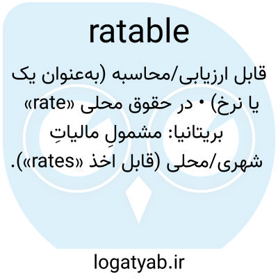 قابل ارزیابی/محاسبه (به‌عنوان یک «rate» یا نرخ) • در حقوق محلی بریتانیا: مشمولِ مالیاتِ شهری/محلی (قابل اخذ «rates»).