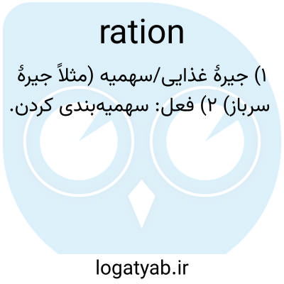 📌 سهمیه ثابت آذوقه یا غذا، به ویژه برای سربازان یا ملوانان یا برای غیرنظامیان در هنگام کمبود.
