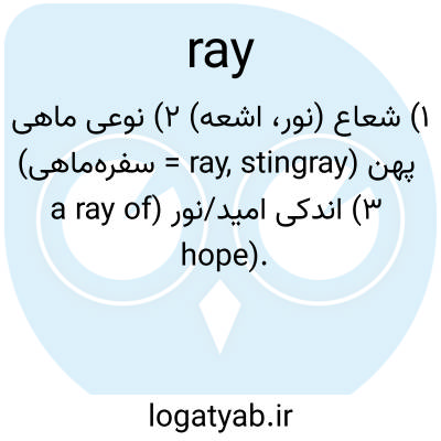۱) شعاع (نور، اشعه) ۲) نوعی ماهی پهن (ray, stingray = سفره‌ماهی) ۳) اندکی امید/نور (a ray of hope).