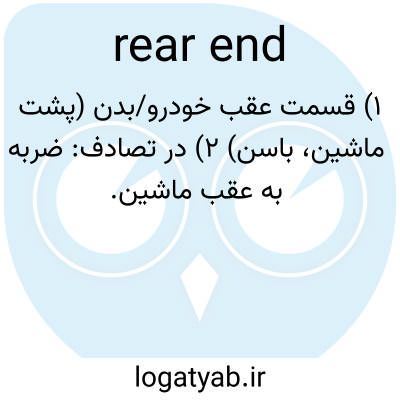 ۱) قسمت عقب خودرو/بدن (پشت ماشین، باسن) ۲) در تصادف: ضربه به عقب ماشین.
