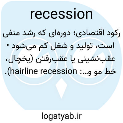 رکود اقتصادی؛ دوره‌ای که رشد منفی است، تولید و شغل کم می‌شود • عقب‌نشینی یا عقب‌رفتن (یخچال، خط مو و…: hairline recession).