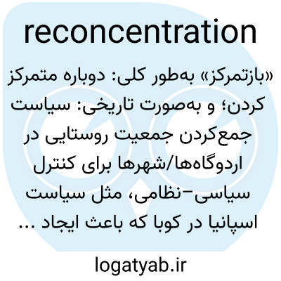 «بازتمرکز» به‌طور کلی: دوباره متمرکز کردن؛ و به‌صورت تاریخی: سیاست جمع‌کردن جمعیت روستایی در اردوگاه‌ها/شهرها برای کنترل سیاسی–نظامی، مثل سیاست اسپانیا در کوبا که باعث ایجاد اردوگاه‌های «reconcentration» شد.