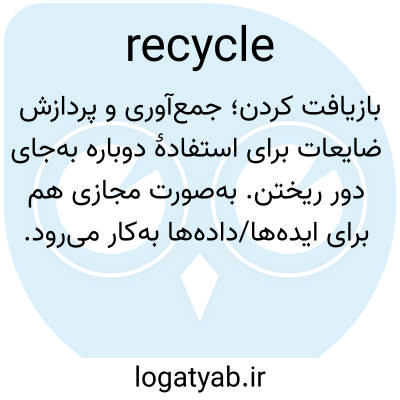 بازیافت کردن؛ جمع‌آوری و پردازش ضایعات برای استفادهٔ دوباره به‌جای دور ریختن. به‌صورت مجازی هم برای ایده‌ها/داده‌ها به‌کار می‌رود.