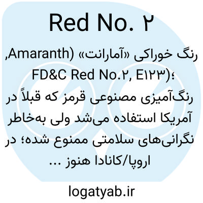 📌 یک رنگ قرمز مصنوعی که در مواد غذایی، داروها و لوازم آرایشی استفاده میشود: در سال ۱۹۷۶ توسط سازمان غذا و داروی آمریکا (FDA) به عنوان یک ماده سرطانزای احتمالی ممنوع شد.