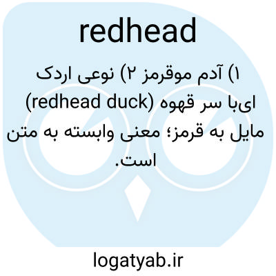 ۱) آدم مو‌قرمز ۲) نوعی اردک (redhead duck) با سر قهوه‌ای مایل به قرمز؛ معنی وابسته به متن است.